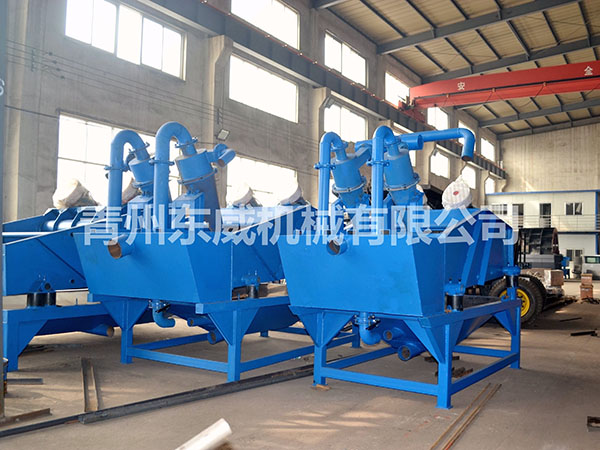目前现有的洗沙生产线上,绝大部分采用湿法生产工艺,不论采用何种形式的洗砂机,其缺点就是细沙流失严重,严重影响沙子的级配,造成级配不合理,细度模数偏粗,大大降低了机制砂的产品质量。过多的细沙排放,还会造成环境污染。为解决上述问题,青州开云online(中国)技术部门潜心研发了细沙回收机(细砂回收机),该细沙回收系统吸收国外先进技术,结合本土砂粉实际情况而设计的细沙回收设备。细沙回收机广泛应用于洗沙场、砂石骨料加工系统、玻璃原材料加工系统、人工制沙生产线、选煤厂粗煤泥的回收以及环保工程(泥浆净化)等,可有效解决细沙回收问题。