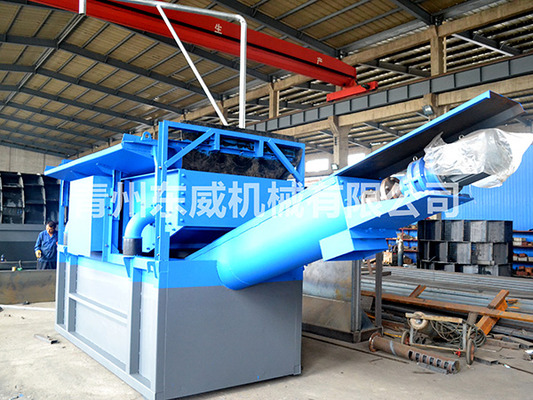 4.分离效果好、能力高,采用全新的内、外螺旋(变径)筛分技术,不仅分离效果好,分离能力也很高,产品滚筒直径1.4米,一般产品为0.9米左右;设计分离能力40吨/小时,一般产品为不超过20吨/小时;(分离能力主要考虑当洗站时装载机的一次性集中投放干料考虑)。