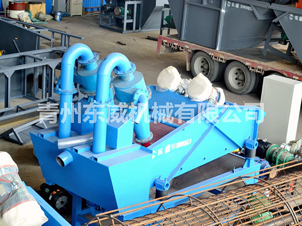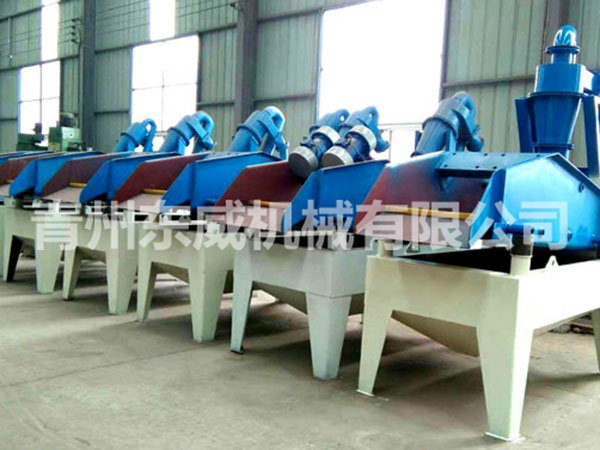 目前现有的洗沙生产线上,绝大部分采用湿法生产工艺,不论采用何种形式的洗砂机,其大的缺点就是细沙流失严重,严重影响沙子的级配,造成级配不合理,细度模数偏粗,大大降低了机制砂的产品质量。过多的细沙排放,还会造成环境污染。为解决上述问题,青州开云online(中国)技术部门潜心研发了细沙回收机(细砂回收机),该细沙回收系统吸收国外先进技术,结合本土砂粉实际情况而设计的细沙回收设备。细沙回收机广泛应用于洗沙场、砂石骨料加工系统、玻璃原材料加工系统、人工制沙生产线、选煤厂粗煤泥的回收以及环保工程(泥浆净化)等,可有效解决细沙回收问题。